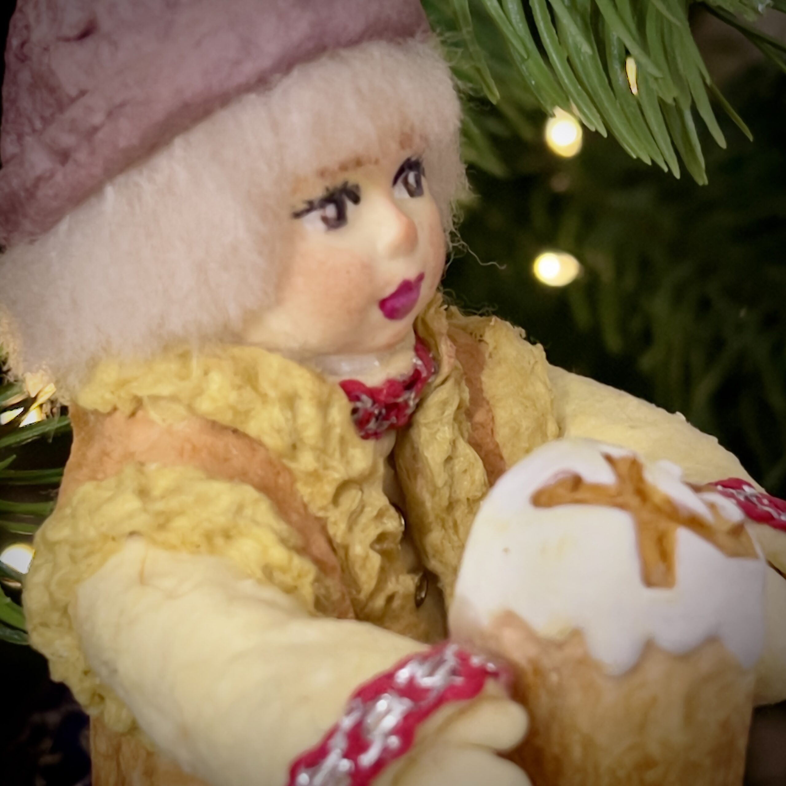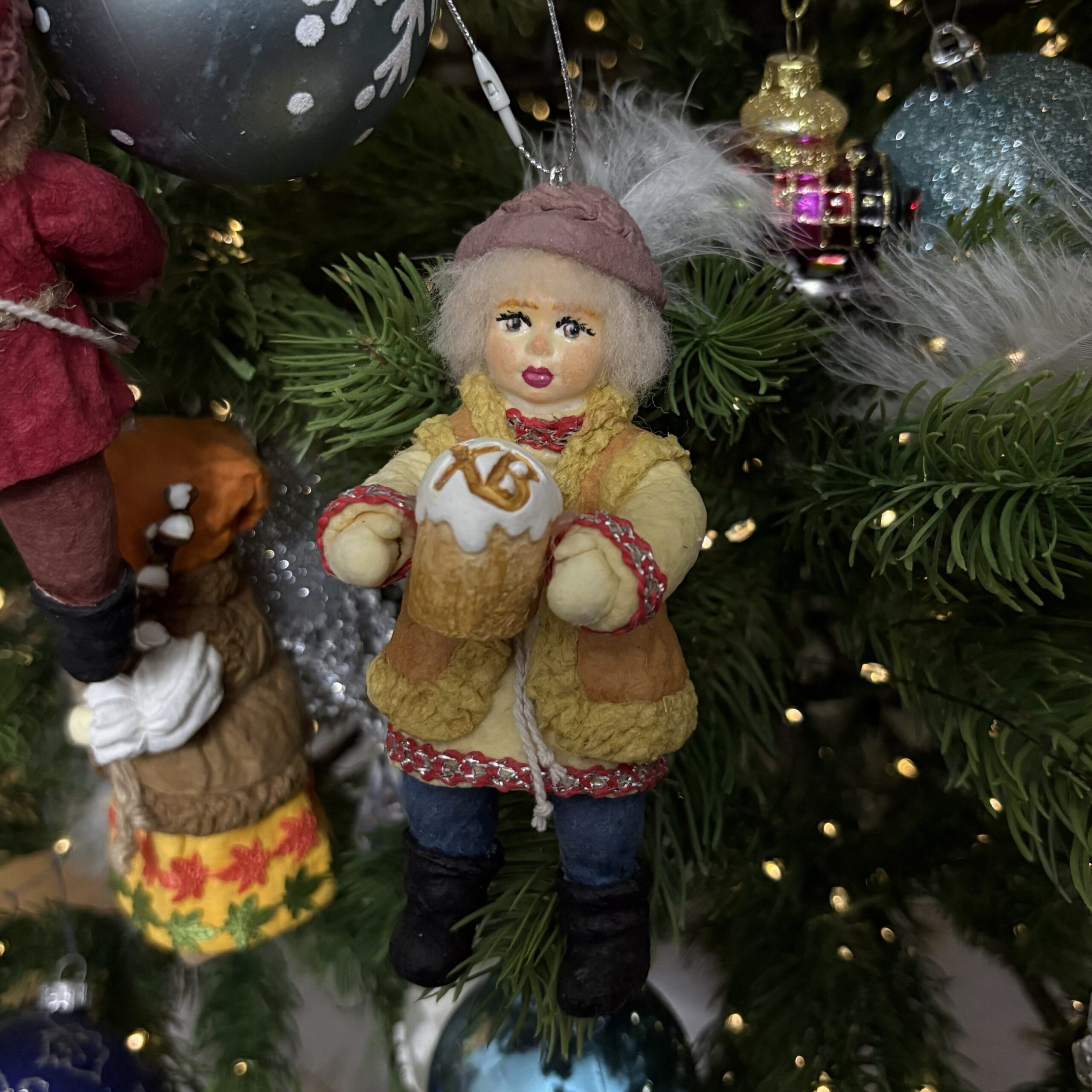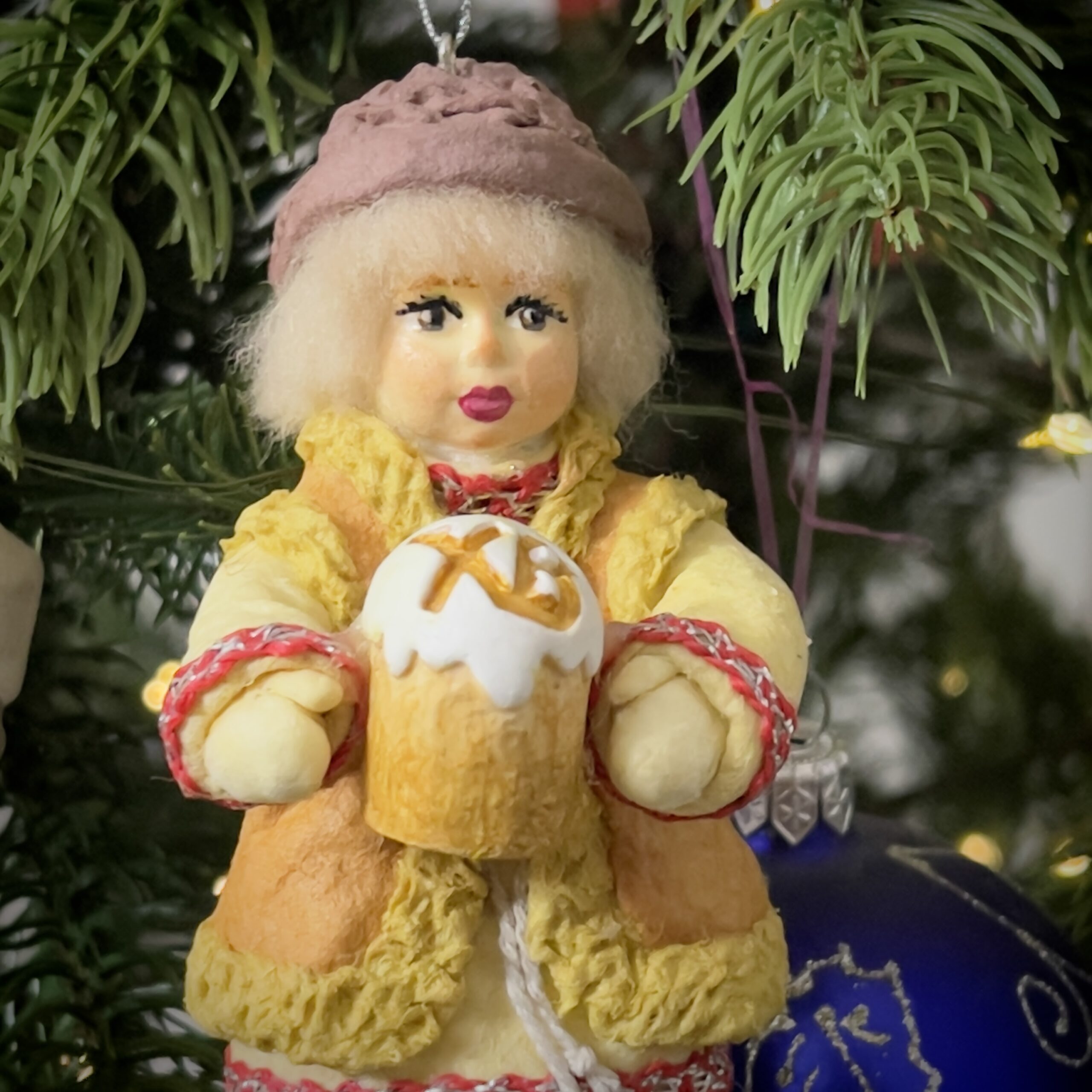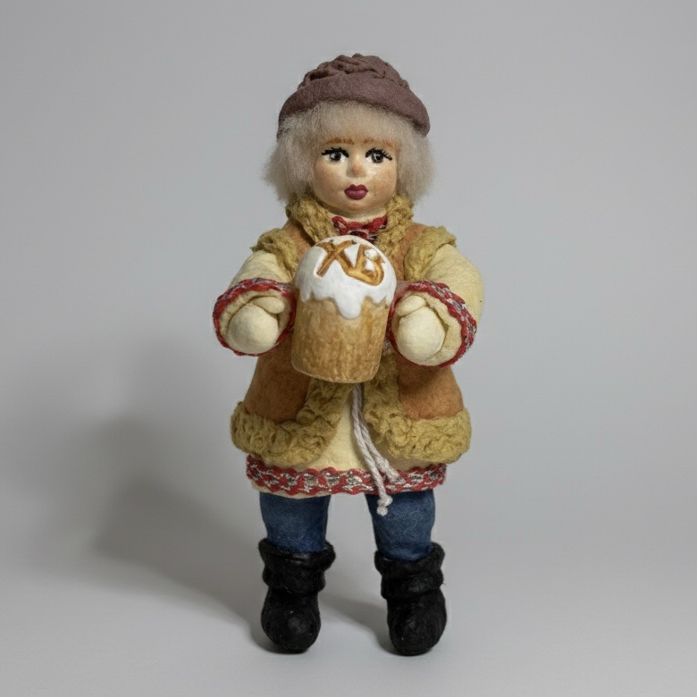 Маленький вестник в меховой душегрейке с праздничным куличом — символ щедрости, тепла и семейных традиций.