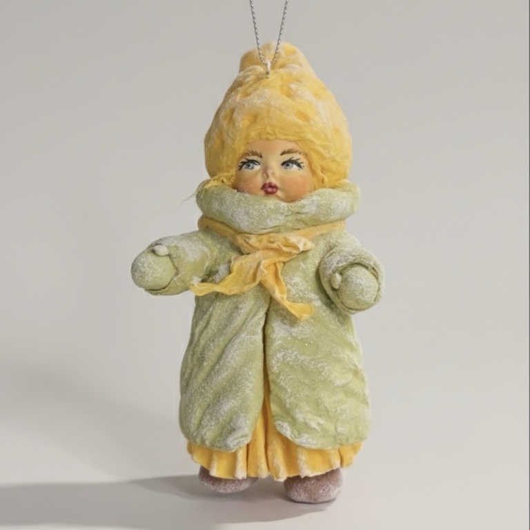 Золотая тихоня не любит спешки. Она появляется в самые спокойные зимние дни — когда снег ложится мягко, а в доме пахнет хвоей и теплом. Её наряд хранит оттенок зимнего солнца, которое редко, но обязательно заглядывает в окна.